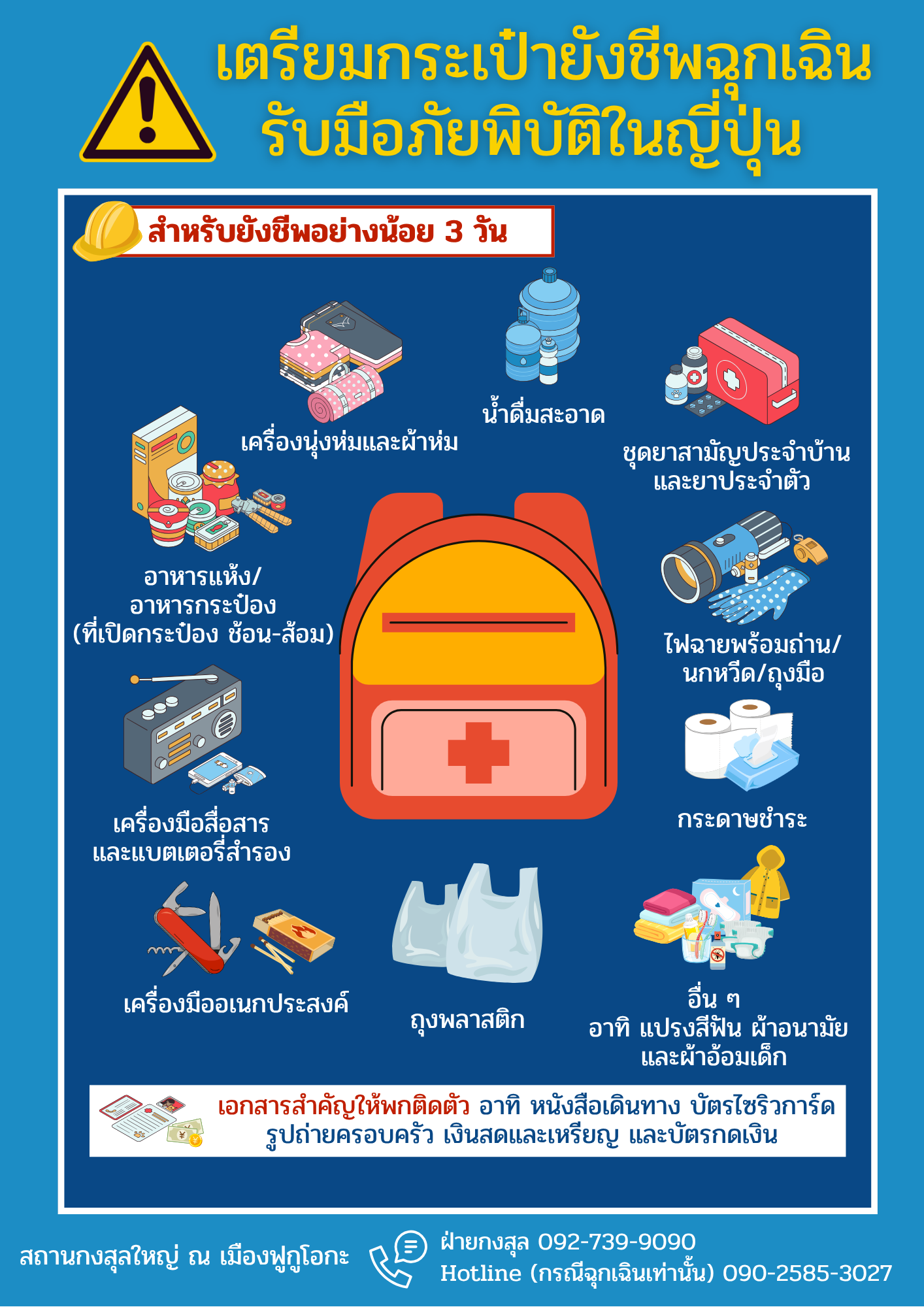 ที่ LINE ฝ่ายกงสุล (https://lin.ee/4VbpwBpjE (ID @341ogqgj)) หรือเบอร์ฉุกเฉิน 090-2585-3027 |